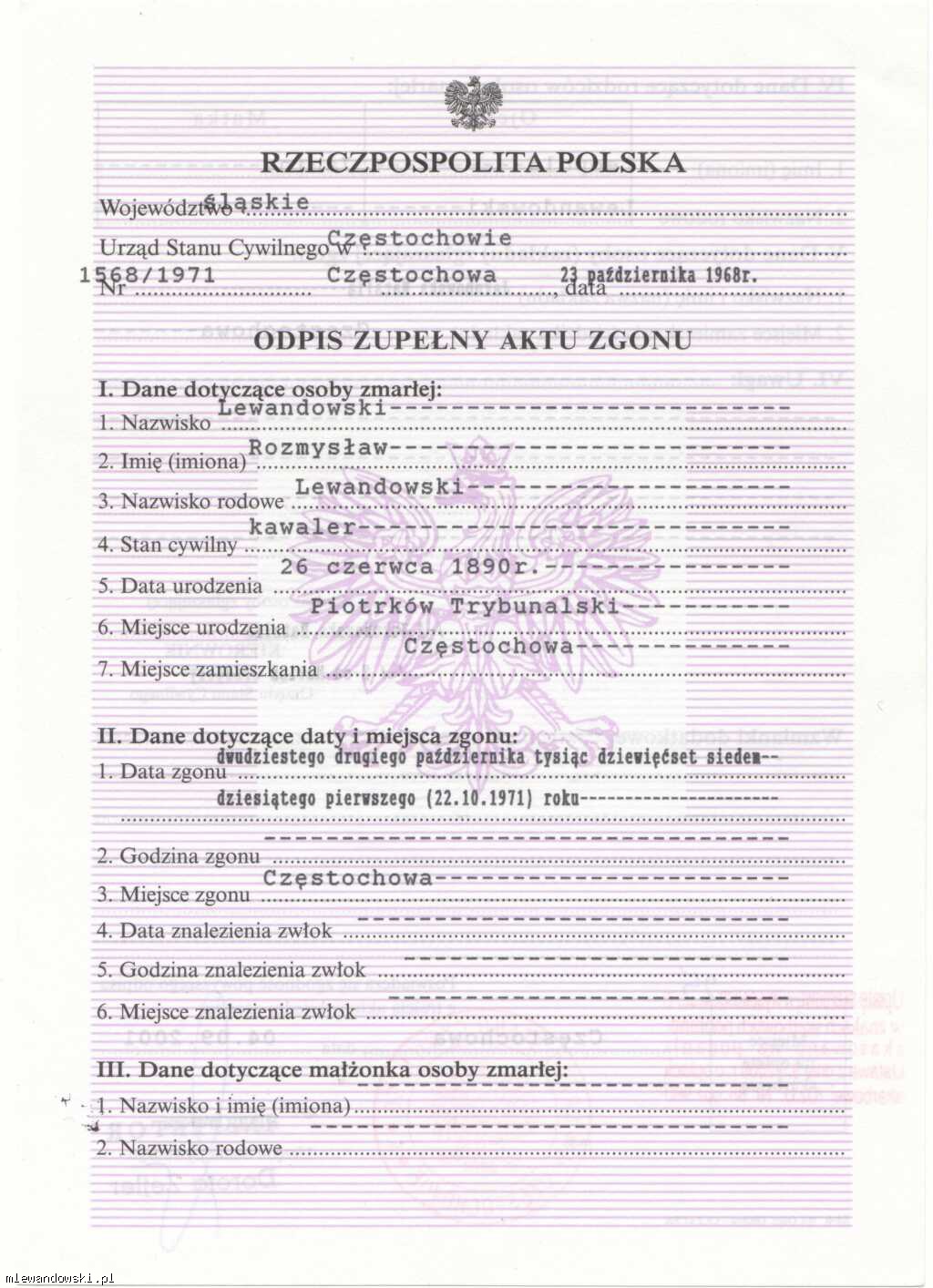 Odpis zupełny aktu zgonu Rozmysław Lewandowski.