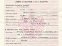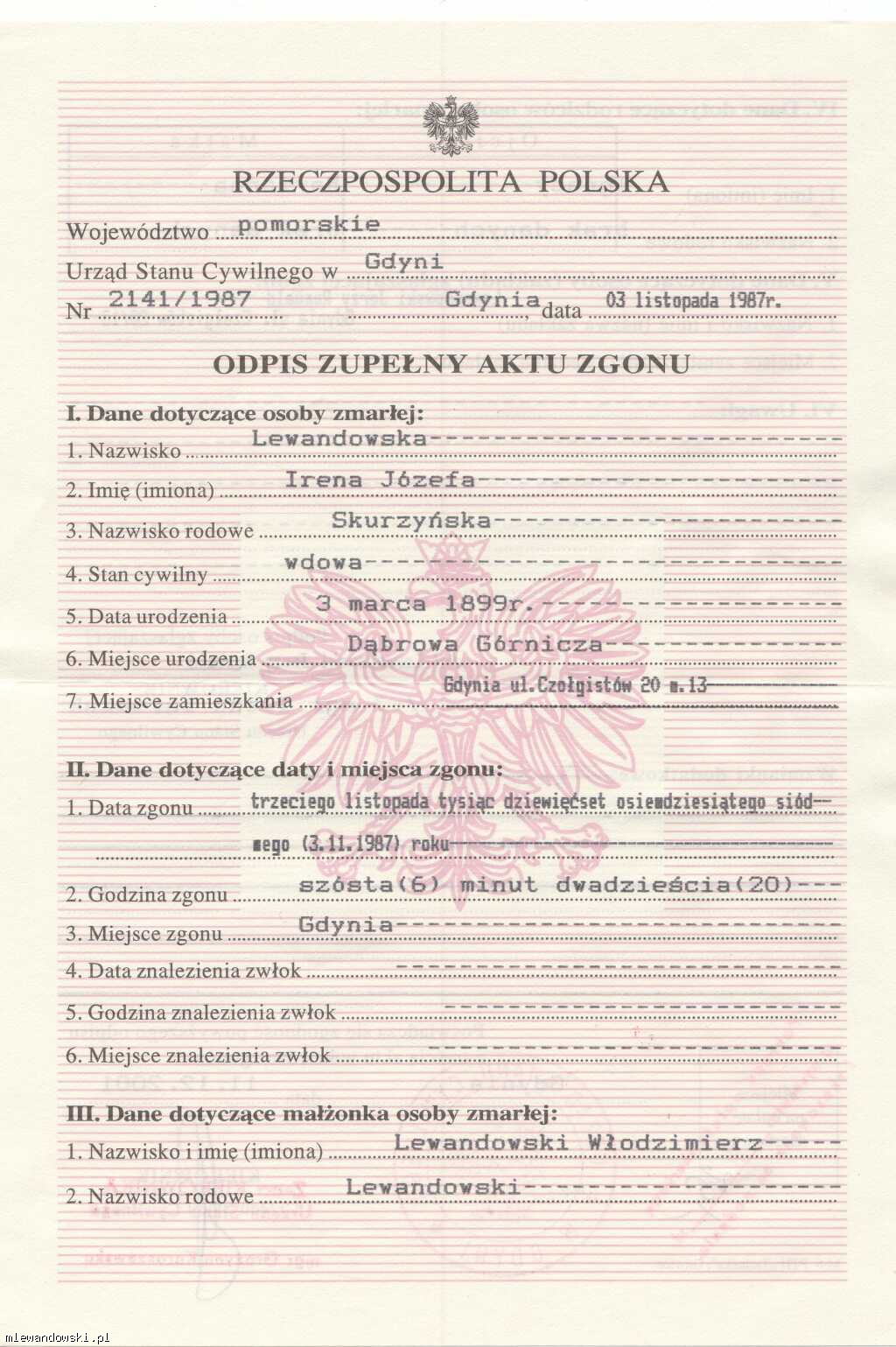 Odpis zupełny aktu zgonu Irena Józefa Lewandowska.