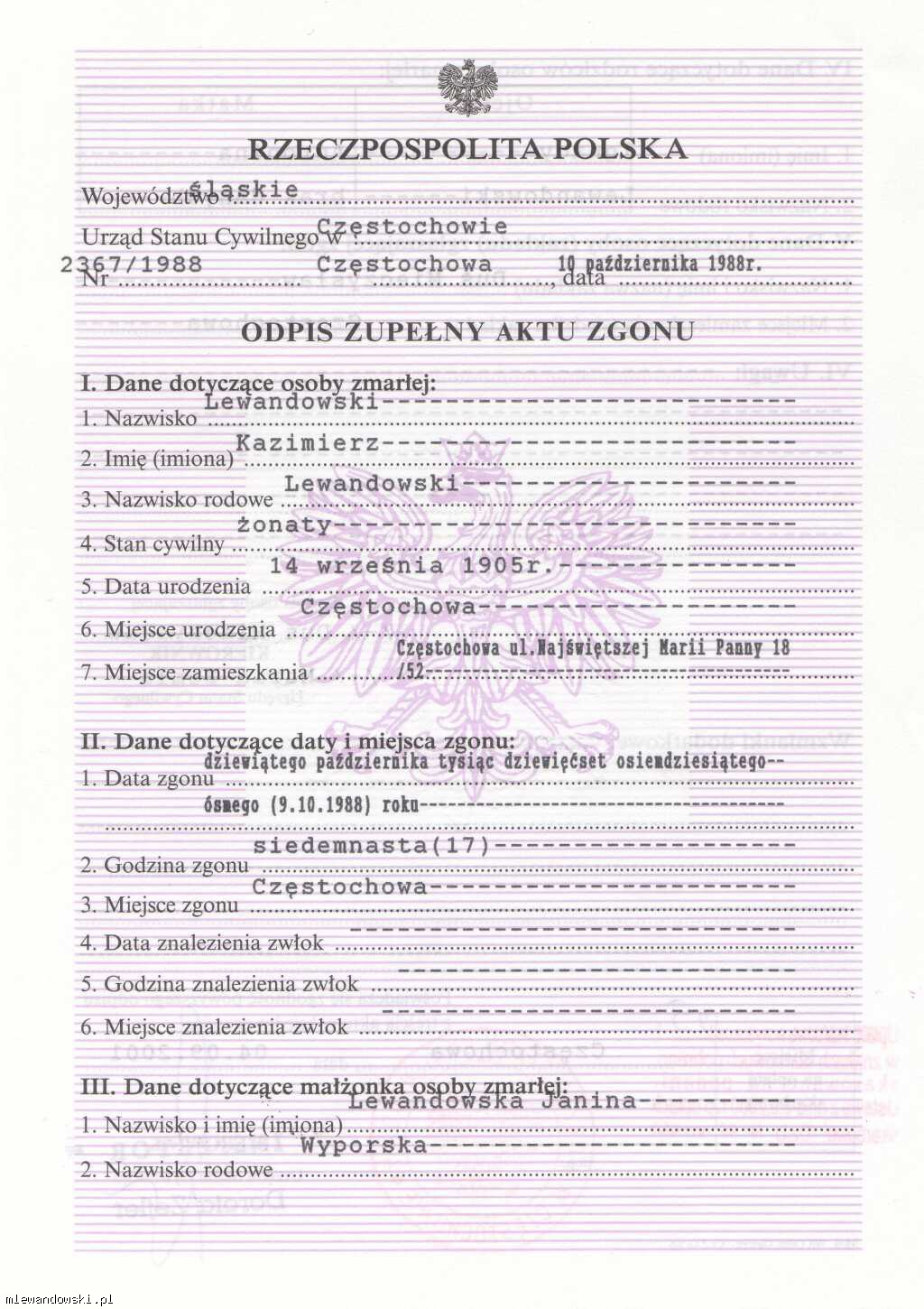 Oryginał dokumentu ze zbiorów własnych znajduje się w aktach Genealogicznego Rodzinnego Archiwum Lewandowskich GRAL® we Wrocławiu.