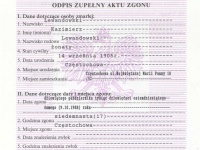 Odpis zupełny aktu zgonu Kazimierz Bogusław Lewandowski.