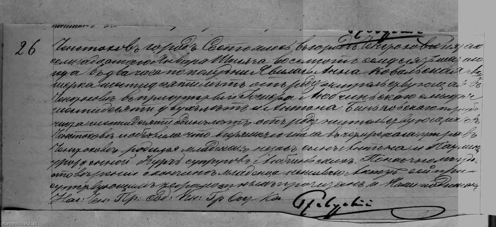 Akt zgonu ……………..(+ 00.00.1876 r. Częstochowa) w języku rosyjskim.