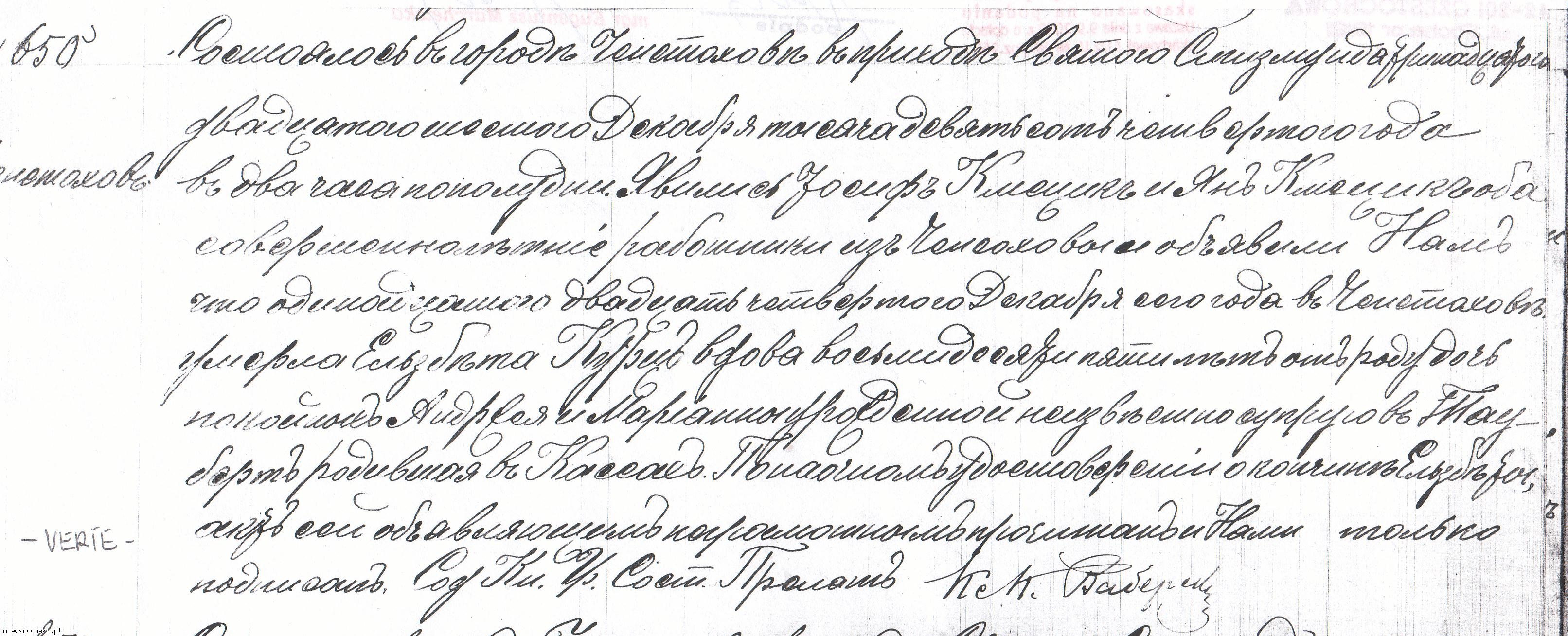 Akt zgonu Elżbieta Kurtz (+11/24.12.1904 Częstochowa)