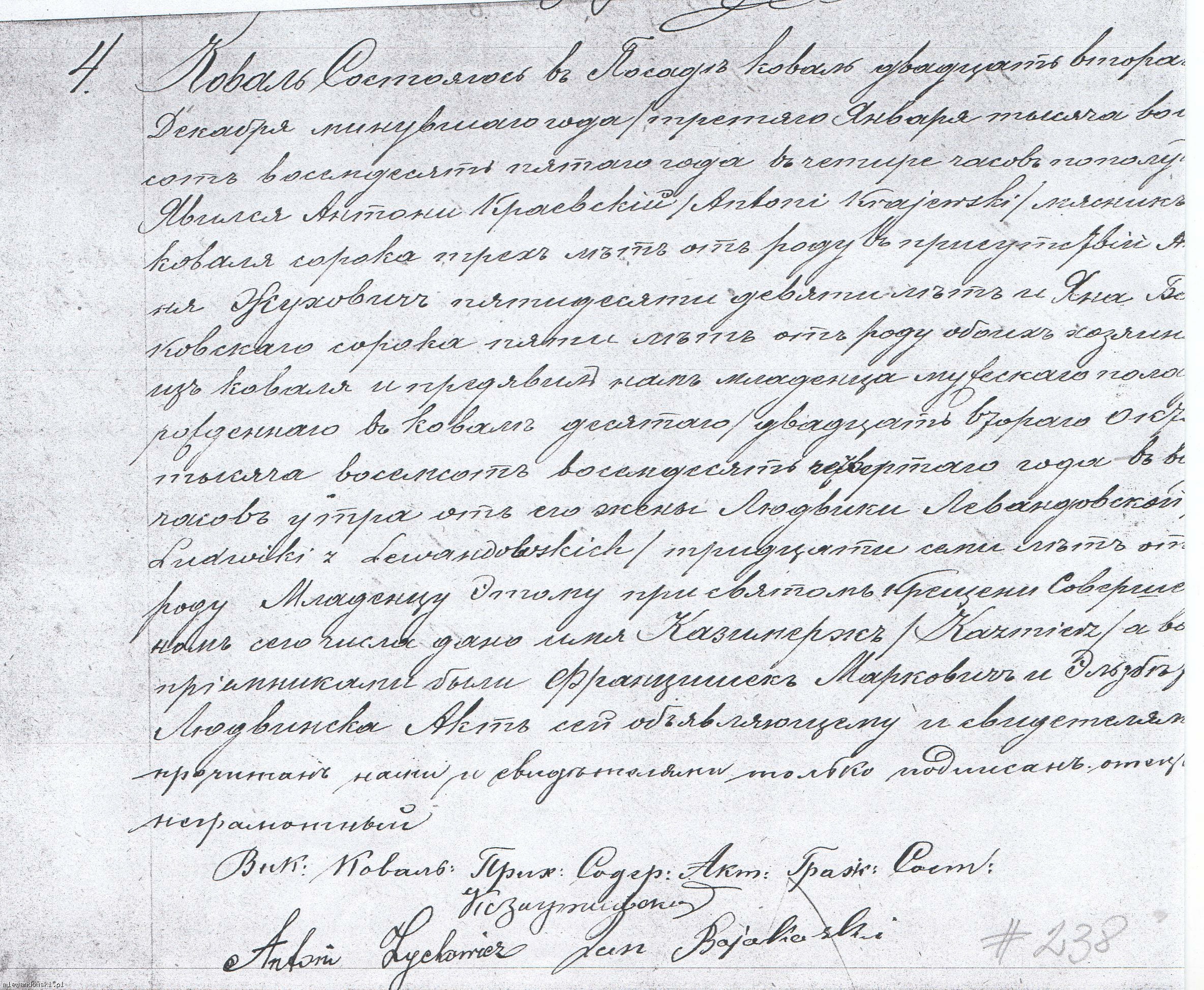 Akt urodzenia i chrztu Kazimierz Krajewski.